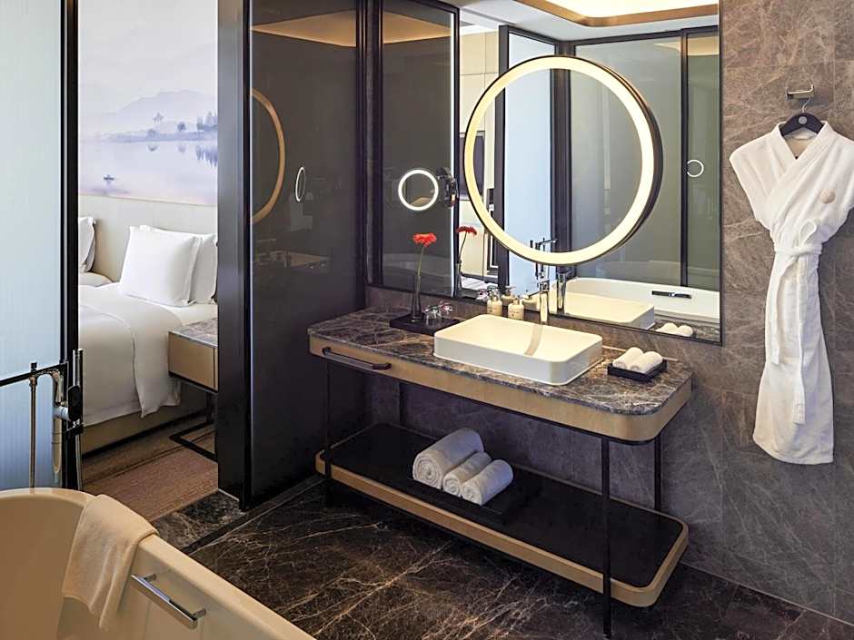 Deluxe Suite, Lounge Access, One King-Size Bed, Lake Or City Views is 969 square feet and includes a double bed 131-150 width.