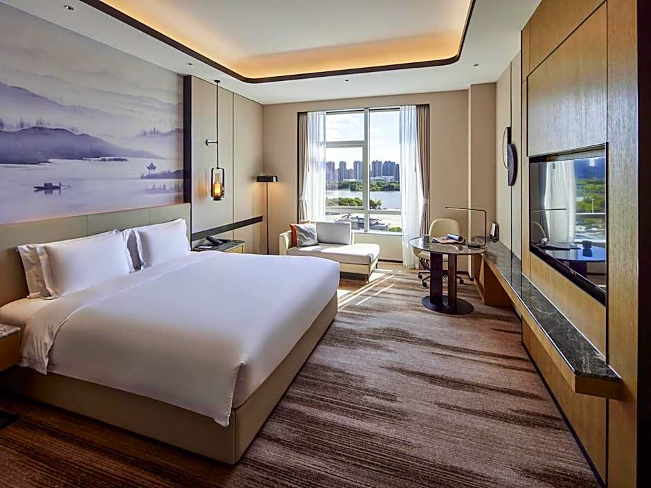 Deluxe Suite, Lounge Access, One King-Size Bed, Lake Or City Views is 969 square feet and includes a double bed 131-150 width.