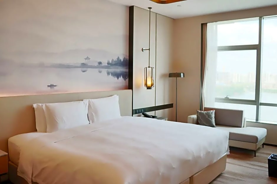 Deluxe Suite, Lounge Access, One King-Size Bed, Lake Or City Views is 969 square feet and includes a double bed 131-150 width.